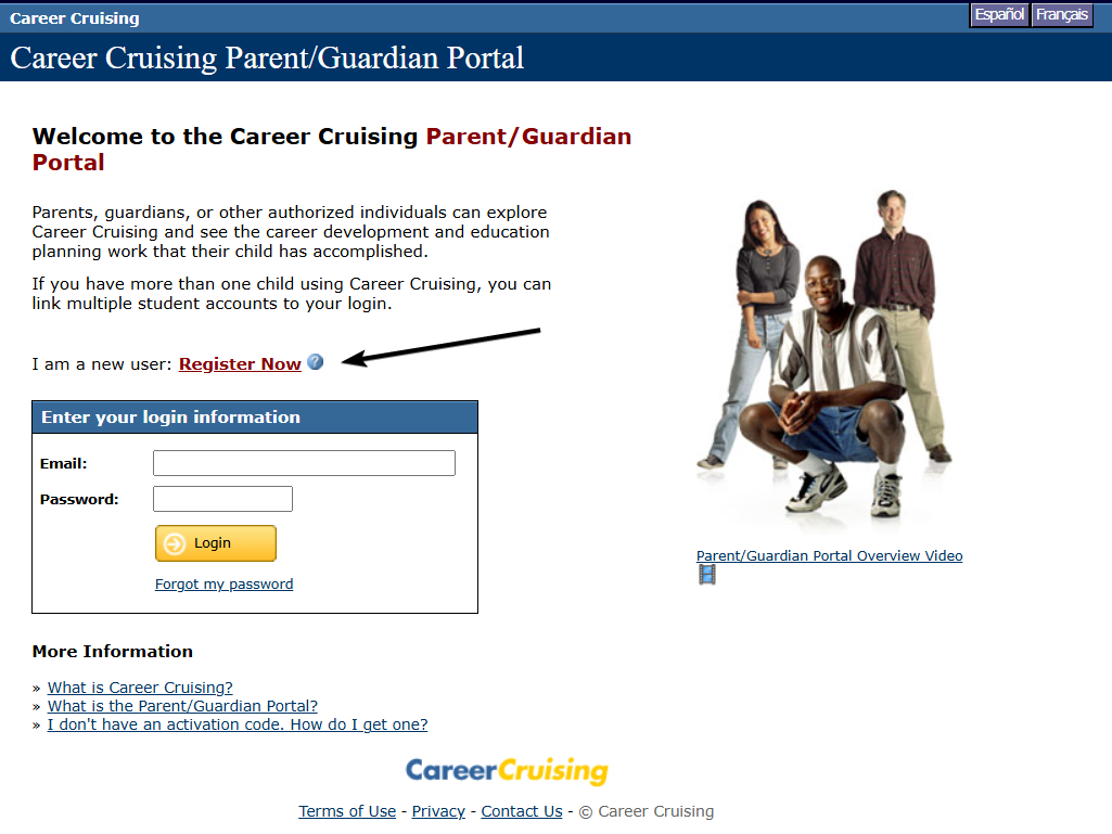 The Career Cruising Parent Portal is a centralized dashboard that allows you to keep in touch with your son or daughter’s Academic and Career Planning process. As the parent or guarding of a child with a Career Cruising account, you can: